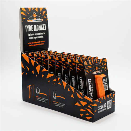 Tyre Monkey är det revolutionerande nya däckjärnet för cyklar som gör det enkelt och snabbt att ta av och montera däck. Utvecklat för att vara det snabbaste och smidigaste verktyget på marknaden för däckbyte.